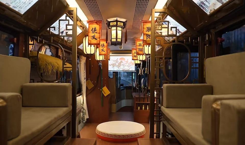 据了解,襄阳公交在国庆期间推出全国首辆“侠义主题”巴士,驾驶员们将装扮成黄蓉、郭靖、洪七公等人物模样,带领游客们按巡回路线游览襄阳古城内外知名景点,车厢内部设计也融入金庸武侠故事元素,如花灯、毛毡、挂旗、雕花木窗等古代装饰。